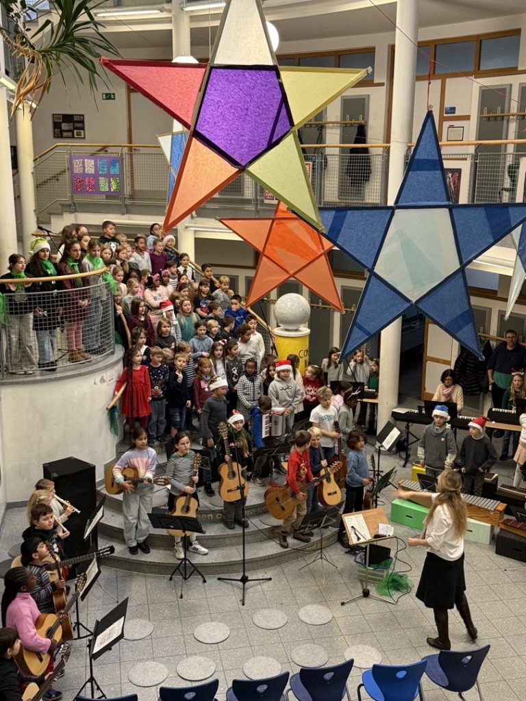Der Adventsbasar 2025 wurde im Rahmen einer festlichen Musikdarbietung im Rundbau der WRS eröffnet. Die beeindruckenden Aufführungen des Grundschulchors und des Grundschulorchesters unter der Leitung von Frau Weber und Herr Lames schufen wieder eine wundervolle Athmosphäre.